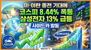 1일 국내 주식시장은 간밤 전해진 중동 완화 소식에 힘입어 극적인 대반전을 연출했습니다. 코스피는 5330.04(+5.49%)로 출발한 뒤 장 초반부터 매수세가 폭증하며 오전 9시 7분 코스피200 선물지수 기준으로 매수 사이드카가 발동되는 기염을 토했습니다.